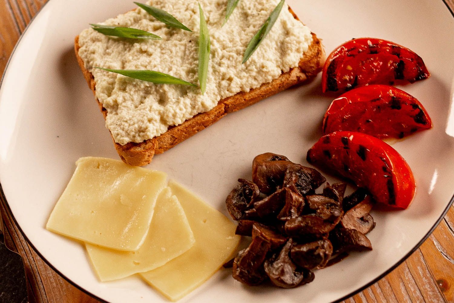 Scrambled eggs, mushrooms, grilled halloumi & grilled tomato