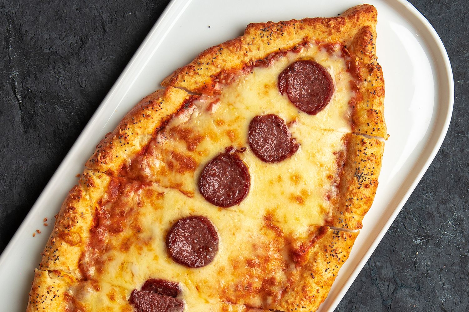 Gluten free pepperoni pide